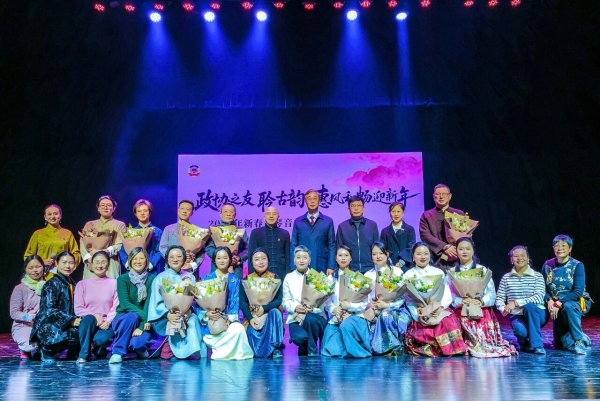 1月13日下午,区政协之友社在区文化馆举行“政协之友聆古韵,惠风和畅迎新年”2026年新春古琴音乐会。区政协主席凌惠康出席并讲话。区政协副主席章宏斌、区政协和区政协之友社历届老领导杜玉英、康大华、李新福、石庆明、刘伟国等出席。区政协之友社理事长王兆钢致辞。此次音乐会由区政协之友社和区古琴协会共同主办,区文化旅游局、区文学艺术界联合会共同指导。