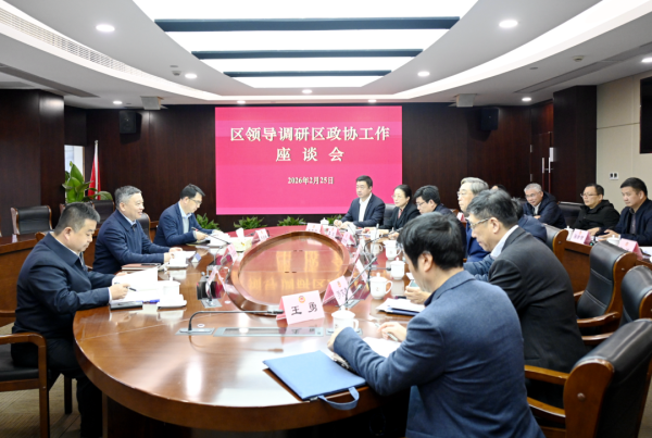 2月25日上午,区委书记李晨昊调研区政协工作,听取新一年相关工作情况汇报。区政协党组书记、主席凌惠康介绍区政协工作情况。区委常委、统战部部长、区政协党组副书记沈伟民,区政协党组成员、副主席章宏斌,副主席罗文杰、李岚、王勇等参加。